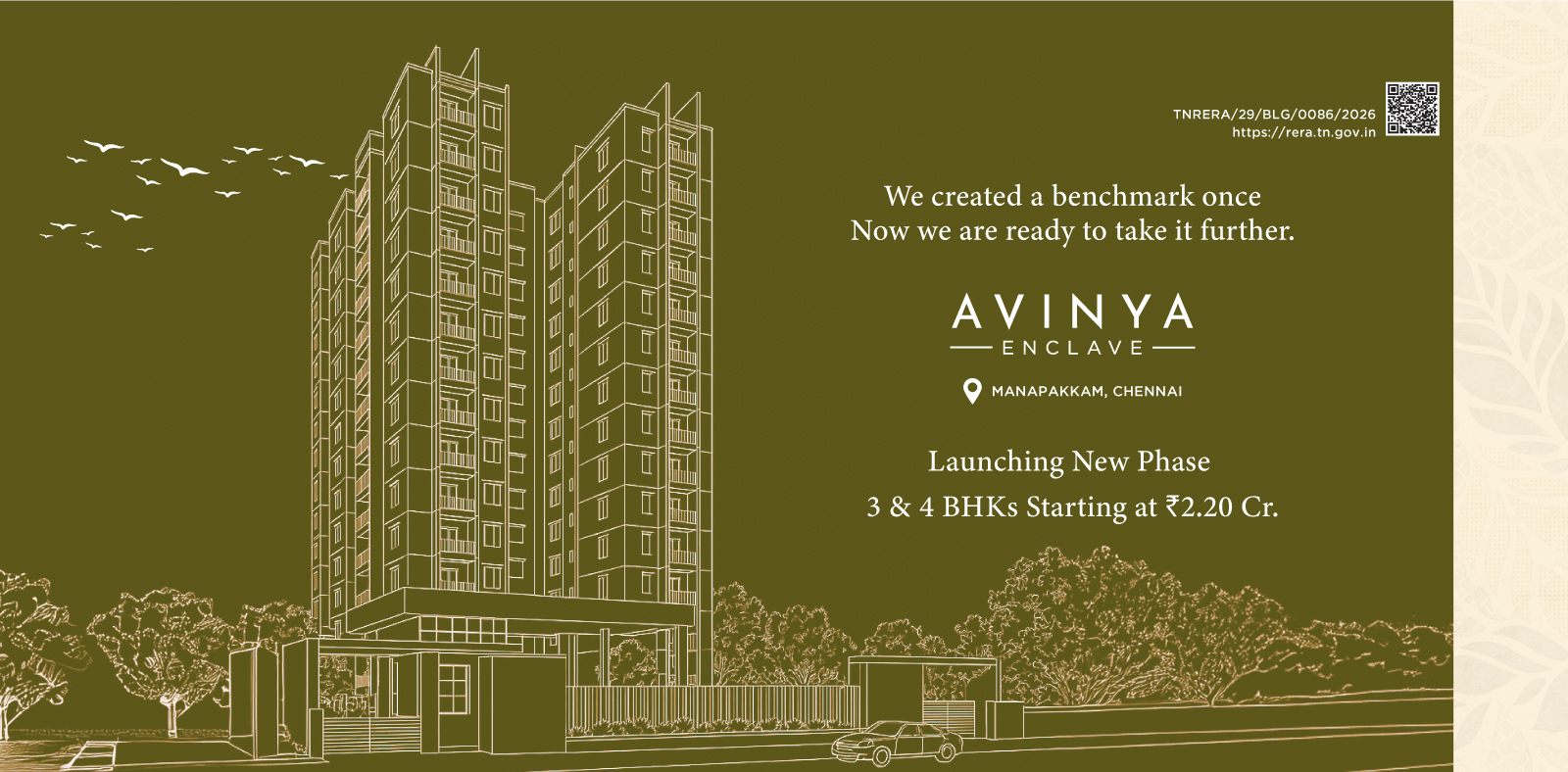 Welcome to L&T Realty Avinya Enclave. A part of the 40-acres mixed-use development in Manapakkam, Chennai, and opposite to L&T campus, Avinya Enclave brings the whole world to your doorstep. From exceptional amenities on the premises to the best retail outlets, commercial hubs, and top social infrastructure in proximity, the residences are crafted to grant you a timeless living experience, in every sense.